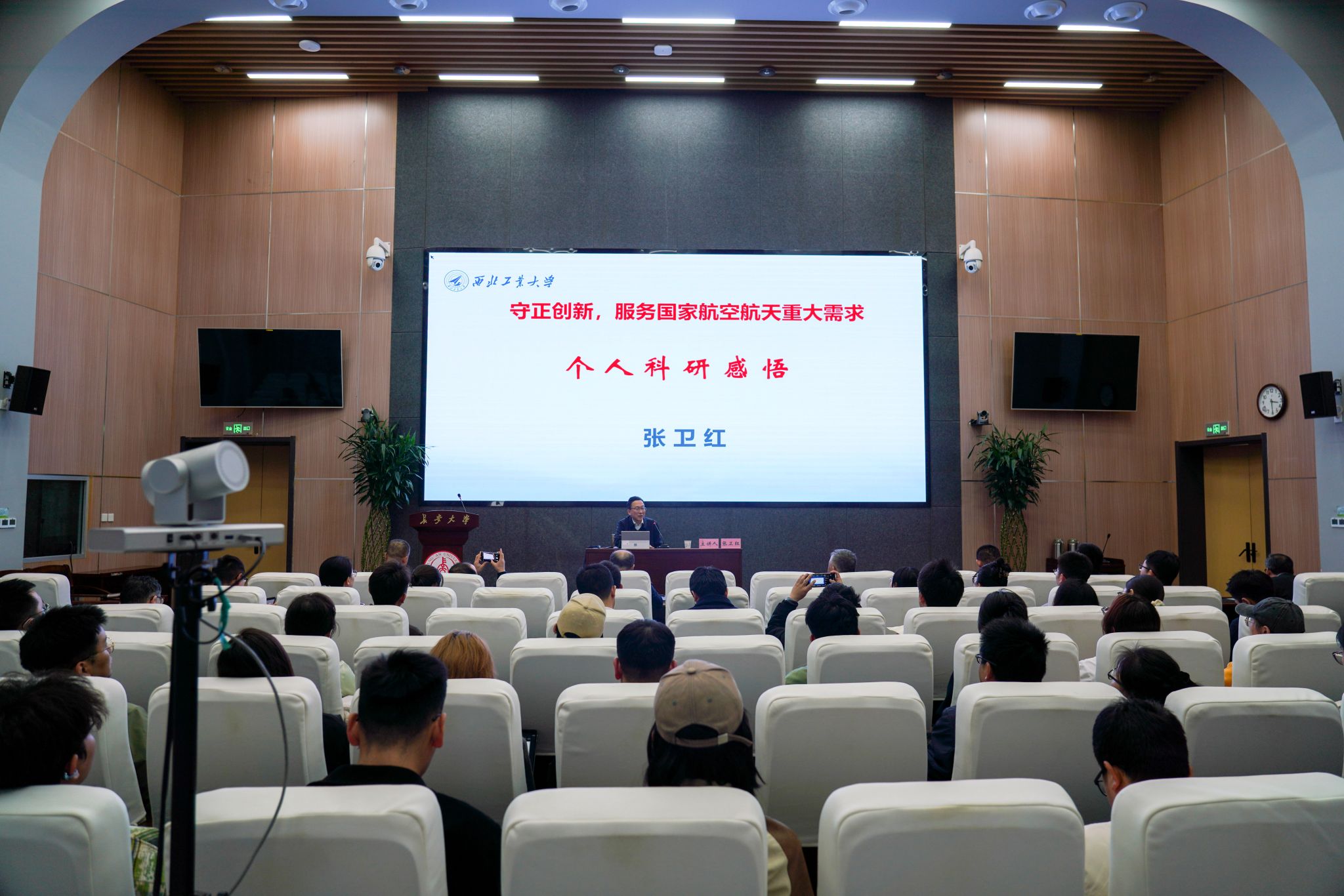 张卫红院士结合自身数十年科研工作实践与经验,围绕“国家需求”“行业特色”“学校定位”三大核心关键词,深入阐释了科研方向选择的关键考量要素。他寄语青年科研工作者,在规划科研道路时,要充分兼顾这三方面内容,推动个人发展与国家、社会发展需求同频共振、深度契合。同时,张卫红院士以结构轻量化设计为具体案例,直观展现了通过优化设计实现减重对提升装备性能的重要意义,系统分析了航空航天这一国家战略重点领域的发展现状与未来趋势,并与现场师生就创新实践中的所思所感进行了深入交流探讨。
